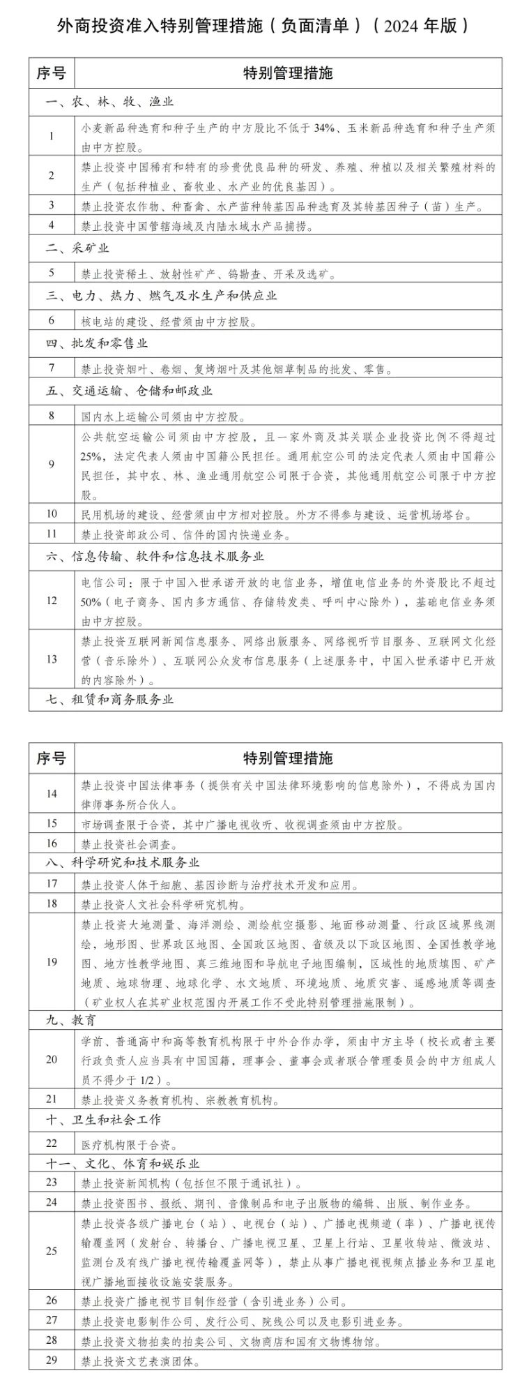 9月8日,国家发展改革委、商务部发布了《外商投资准入特别管理措施(负面清单)(2024年版)》,即2024年版全国外资准入负面清单。